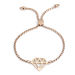 1 Piece Bracelets Chaine Perlee en 304 Acier Inoxydable Placage sous Vide PVD Respectueux de l'Environnement Plaque Or 18K Rouge Fonce Fleurs avec Fermoir Mousqueton et Chaine d'Extension 17cm long